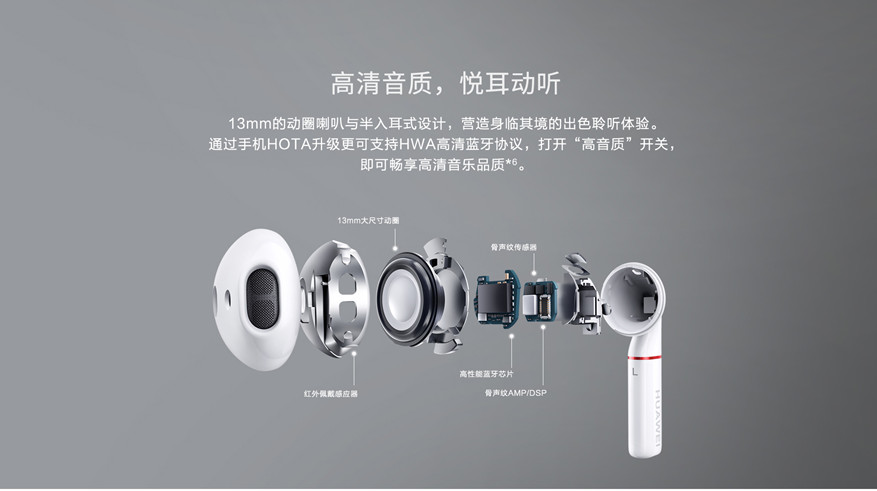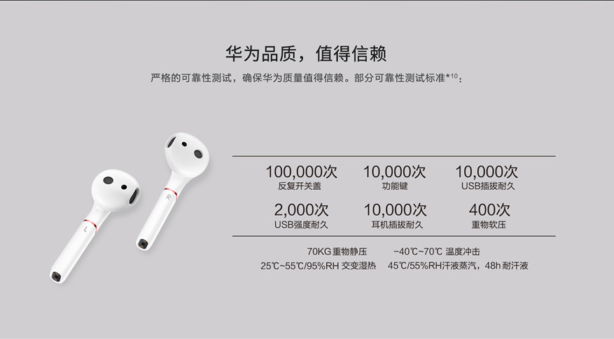 HUAWEI FreeBuds 2 Pro X 1對(duì)(左/右耳機(jī)各一個(gè))充電盒 X 1充電線 X 1快速指南 X 1